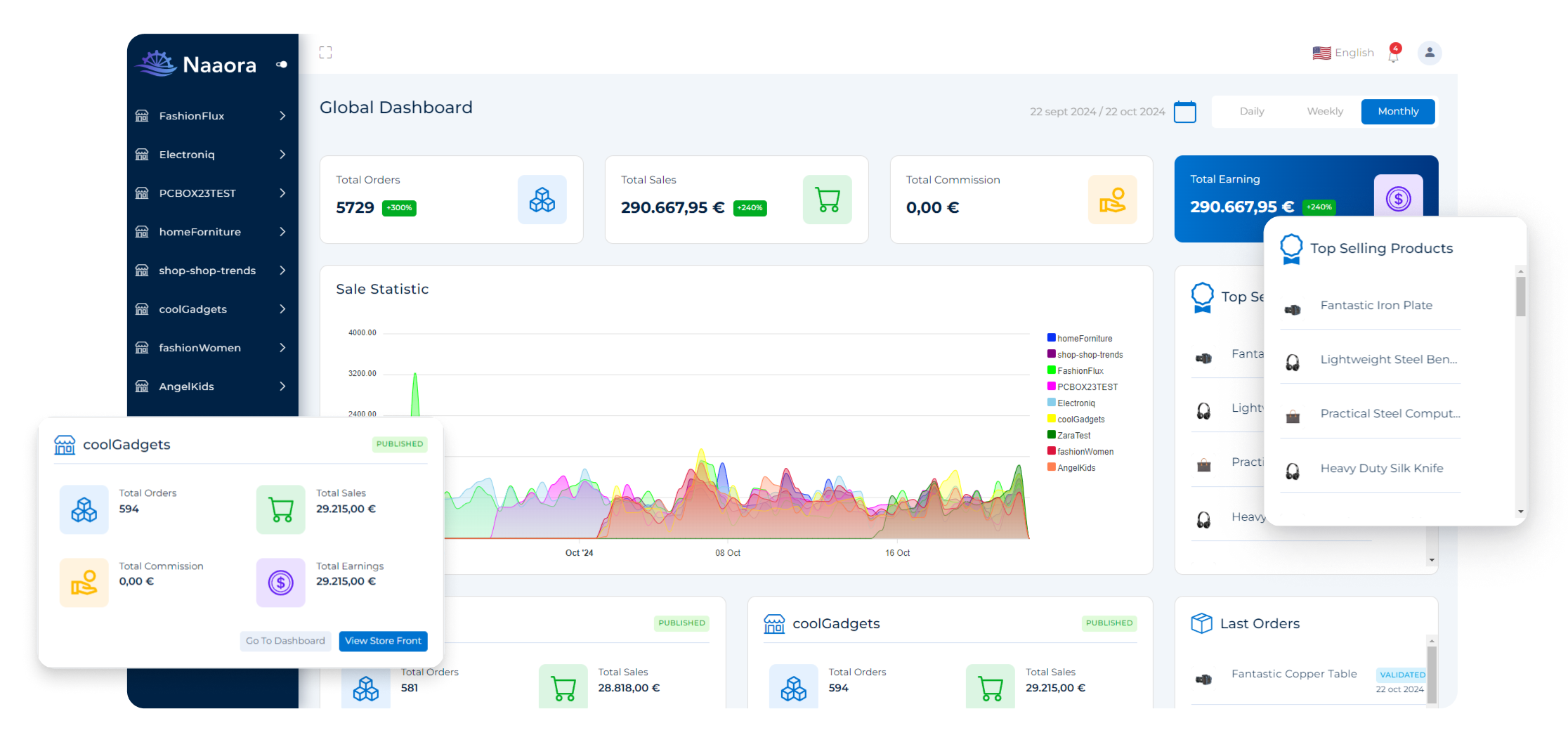 Advanced Dashboard: Track your sales and monitor your store’s performance with real-time insights.